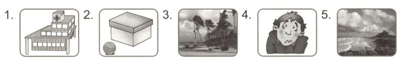 1. hospital 2. beside 3. windy 4. afraid 5. cloudy