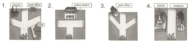 5. The post office is beside the park. / The park is beside the post office.