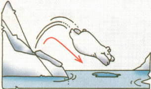 He jumps in the water,