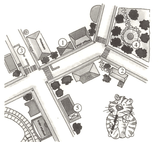 ### V. Read and write.(读句子,将建筑或场所对应的序号写在图片里正确的位置。)(10分)
