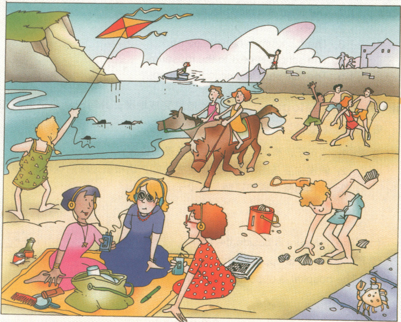 Today is Children's Day. There is no school today. Lucy and her classmates are on the beach. Look, they are having a great time!