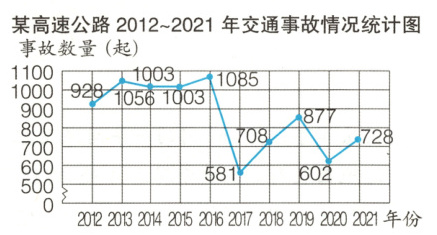 1. 从统计图中可以看出2012年至( )年交通事故起数总体呈增长趋势。某高速公路2012~2021年交通事故情况统计图
