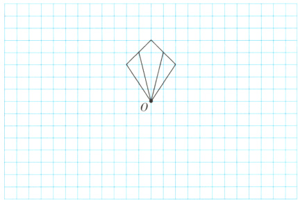 2. 将图形A绕点O逆时针旋转90°,再向下平移3格得到图形C,点O的对应点为点O₁。(5分)