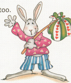 □ First the rabbit meets a lion. The lion wants to eat him.