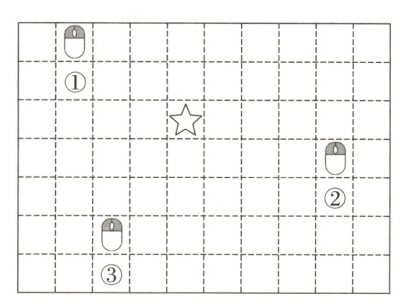 (2)鼠标④要到达鼠标③的位置需要先向左平移2格,再向下平移3格,请你用“☆”标出鼠标④的位置。(2分)