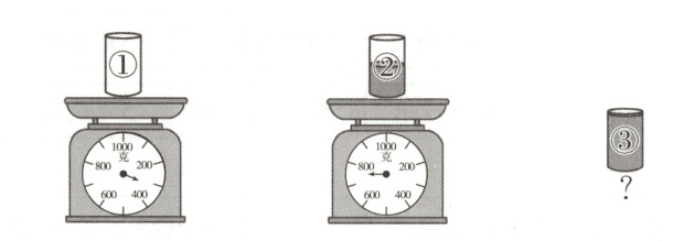 1200 【解析】750 - 300 = 450(克),所以半杯橙汁重 450 克,750 + 450 = 1200(克),所以③号杯子装满橙汁后重 1200 克。