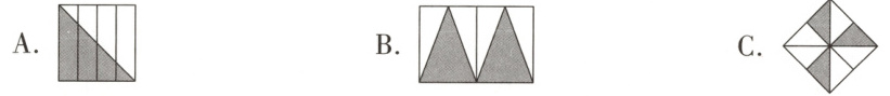 9. 下面图形中,涂色部分不能用$\frac{1}{2}$表示的是( )。