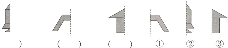 3. 奇奇在教室和同学玩拼图游戏。已知拼好的图形均为轴对称图形,请你判断每个图形的另一半,并将序号填在对应的括号里。