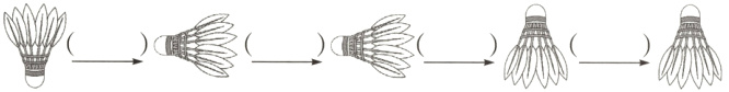 4. 体育课上,奇奇和小伙伴打羽毛球,观察羽毛球在空中的运动状态,在括号里填上“平移”或“旋转”。