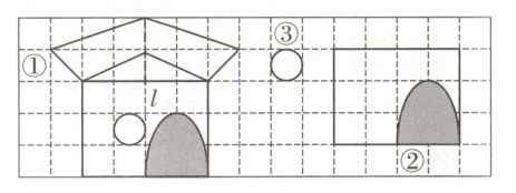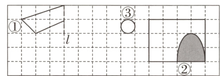 (1)根据对称轴l将图形①补充完整。(5分)