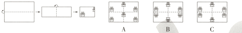 19. 如图,将一张长方形彩纸沿虚线对折后,在纸上剪出小熊图案,展开后的图形是( )。
