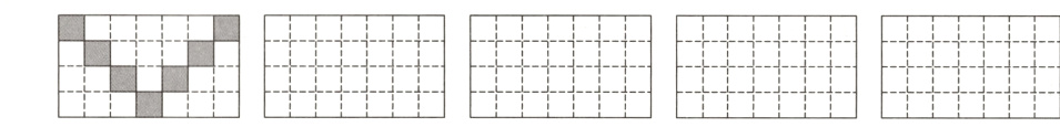 在方格中,由相同的涂色方块组成了一幅轴对称图案,请仿照此图案,在下列方格中设计出四种符合要求的轴对称图案。要求:①不得与原图案相同;②涂色方块的个数要相同。