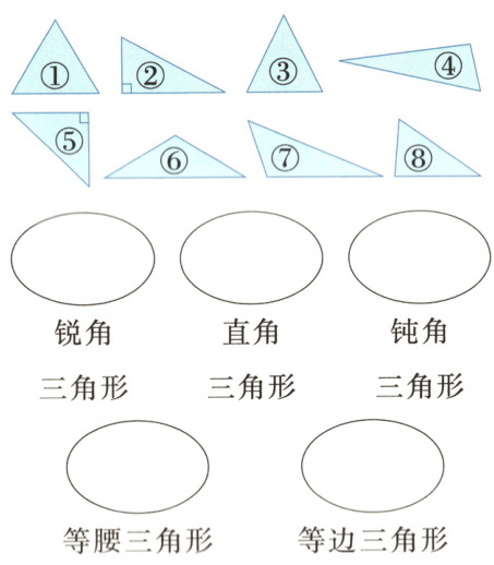 ( )个锐角三角形 ( )个直角三角形 ( )个钝角三角形