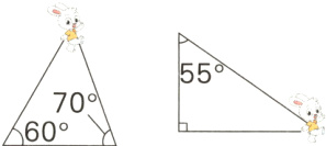 3.(名校期末真题)调皮的小兔子把三角形其中的一个角遮住了,被遮住的角各是多少度?请列式算一算。