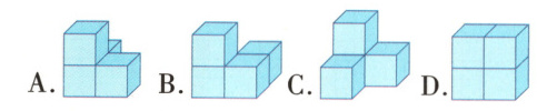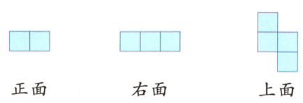 解析:根据从上面看到的形状可知,这个立体图形一共有3列,每列至少有1个正方体,所以至少由3个正方体组成。根据从右面看到的形状可知,这个立体图形有上下两层,结合从上面看到的形状可知,搭这个立体图形最少要用4个正方体,如下图。