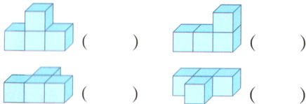 (1)乐乐用4个正方体搭立体图形,从正面、右面和上面看到的形状完全相同,他搭的可能是( )。