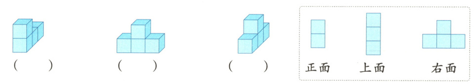 1. 可用4个正方体搭出了一个立体图形,从正面、上面和右面看到的形状如下。他搭的是下面哪一个?在合适的图形下面画“√”。