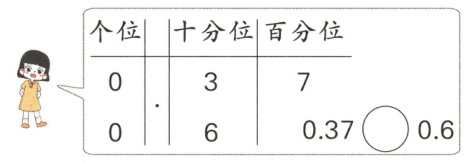 1.[新趋势·算理探究]下面是三位同学比较0.37和0.6大小的方法。