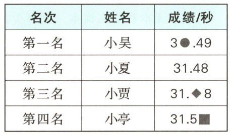 7.[新趋势·思维探究]下面是游泳比赛的成绩,被遮挡住的数字分别是多少?