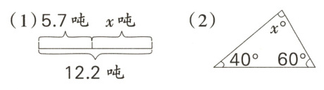 (1)$5.7 + x = 12.2$ $x = 6.5$