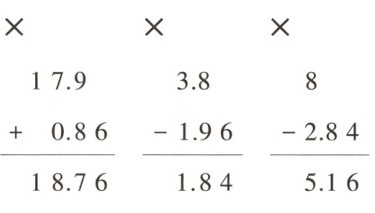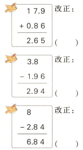 解析:根据“减数=被减数−差”,先计算出这个两位小数,再计算正确的结果。