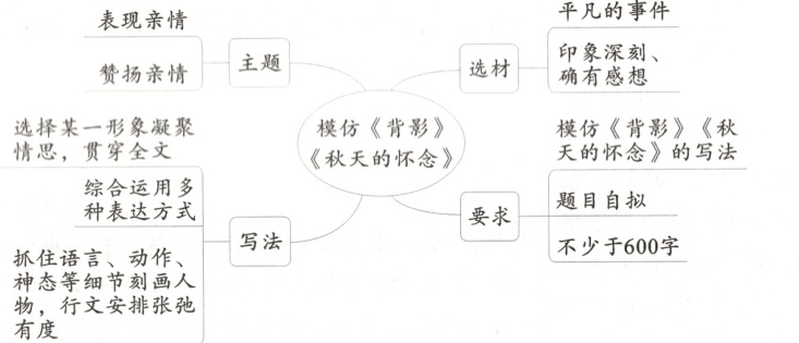在众多表现亲情的散文中,《背影》《秋天的怀念》都是非常典范的作品,以平实的语言叙写平凡的事件,传达真挚的情感。模仿这两篇课文的写法,写一篇作文,题目自拟。不少于600字。