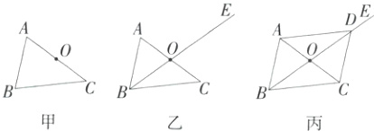 11. 甲乙丙三人用同一张矩形纸张接力进行如图所示的操作:甲任意画一个△ABC,折叠纸张,使得点A与点C重合,折痕与AC边交于点O;乙再折出射线BO,点E在BO的延长线上;丙再折叠纸张,使得OB落在OE上,点B的对应点为点D,连接AD,DC. 下列说法错误的是( )