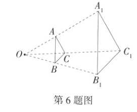 6.(2024四川凉山州中考,11,★★☆)如图,一块面积为60 cm²的三角形硬纸板(记为△ABC)平行于投影面时,在点光源O的照射下形成的投影是△A₁B₁C₁,若OB∶BB₁=2∶3,则△A₁B₁C₁的面积是(M9224001) ( )