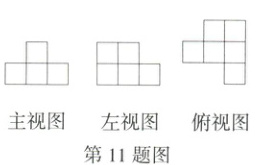 13.(2024黑龙江绥化中考,2,)某几何体是由完全相同的小正方体组合而成的,如图所示的是这个几何体的三视图,那么构成这个几何体的小正方体的个数是 ( )