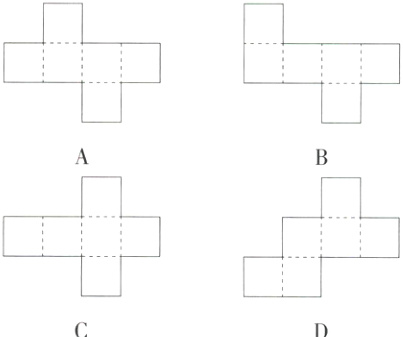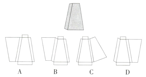 3.网购已成为人们购物的一种主要渠道,某快递公司在打包物品时,通过如图所示的包装盒进行包装,下列哪个选项是包装盒的平面展开图? (M9224003) ( )