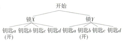 4.用a,b,c,d四把钥匙去开X,Y两把锁,其中仅有a钥匙能够打开X锁,仅有b钥匙能打开Y锁.在求“任意取出一把钥匙能够一次打开其中一把锁”的概率时,以下分析正确的是 ( )