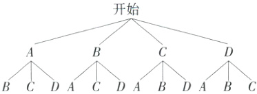 B。记《论语》《孟子》《大学》《中庸》分别为A,B,C,D,画树状图如下:
