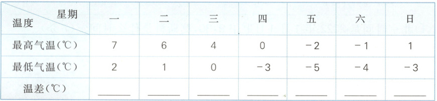 2. 下表是实验学校红领巾气象站小组测量并记录的数据,请你算出每天的温差。