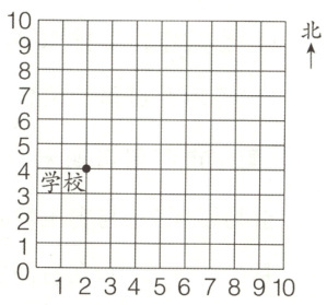 2. [石家庄市高新区期末]学校的位置用数对表示为(2,4)。已知右图每个小方格对角线的长度为100米。根据提示在方格图中标出各个地方的位置,并用数对表示。