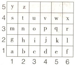 1. 按顺序找出(6,1),(3,3),(3,3),(2,4),(2,1),(1,1),(6,2),(6,2)位置上的字母,组成一个单词,并写出它的中文意思。