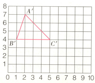 4. 三角形ABC先向上平移3格,再向左平移4格后得到右面方格纸上的三角形A'B'C',请在方格纸上画出三角形ABC,并用数对表示出三角形ABC各顶点的位置。