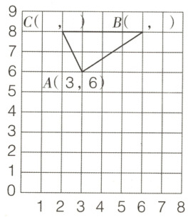 6. [白城市通榆县期末]先用数对写出三角形 ABC 各个顶点的位置,再画出三角形 ABC 向下平移 4 个单位后的图形,并用数对表示出移动后所得图形顶点的位置。