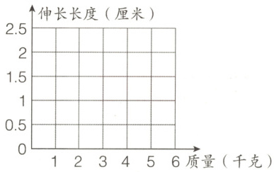 (2)根据表格中的数据,在方格图上找出对应的点,然后依次连接这些点,即可得到所挂物体质量和伸长长度的关系图像。