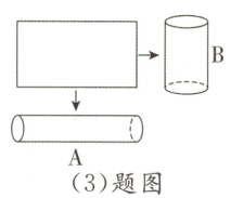 (3)如图,一张长方形纸分别沿长和宽围成A、B两个不同的圆柱形纸筒(不重叠)。如果给两个纸筒都做上底面,那么圆柱A的表面积( )圆柱B的表面积。(填“大于”“小于”或“等于”)
