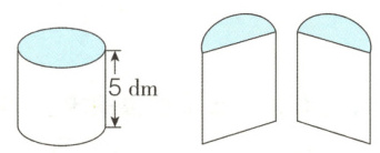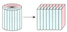 4. [石家庄市栾城区期末]一个圆柱,在直径位置沿高切开分成完全相同的两部分,两部分的表面积之和比圆柱的表面积增加了40平方分米,这个圆柱的体积是多少?