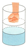 2. 聪聪从科学课上了解到人的心脏体积和一个拳头的体积差不多。于是聪聪找来一个圆柱形玻璃容器,从里面量得底面直径是10厘米,高是15厘米。他做了一个实验:先把拳头放进去,再往里面倒水,一直倒水至拳头恰好完全浸入水中,此时水面高9厘米,然后把拳头拿出来,水面降到5.8厘米。聪聪心脏的体积大约是多少?