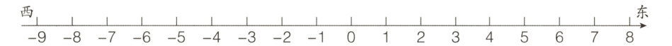 (4)如果小华从0先向东行8米,又向西行9米,这时他的位置表示为( )米。