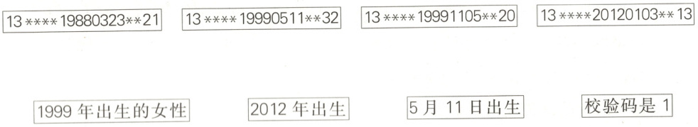 3. 有5个人的身份证号码如下: