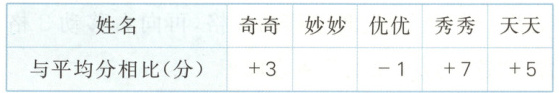 (2)用正数、负数或0表示出每名同学的成绩与平均成绩相比的结果,填在下表里。