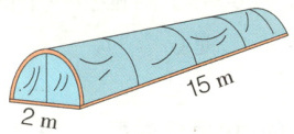 2. 如图是用塑料薄膜覆盖的蔬菜大棚,长为15米,横截面是一个直径为2米的半圆。