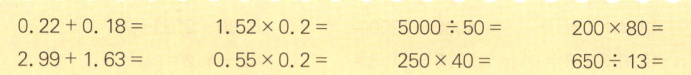 口算天天练:0.4 0.304 100 16000 4.62 0.11 10000 50