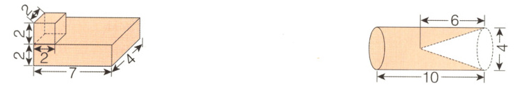 (1)体积:$7×4×2 + 2^{3}=64$(立方厘米)表面积:$(7×4 + 4×2 + 2×7)×2 + 2×2×4 = 116$(平方厘米)