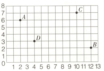 2. 下图是幸福镇主要街道的平面图,晓春家住在A处,小青家住在B处,图书馆在C处,电影院在D处。