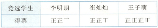 2. 六(1)班民主选举文艺委员,有3名学生参加竞选。全班投票情况如下。(每人投一票)