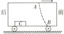 19. (3分)如图,汽车沿平直公路向前行驶,但不知是“加速、匀速、减速”中的哪种状态. 车顶A处滴落的水滴最终落在靠前的B处. 车厢地板上的木箱C始终相对于车厢静止. 画出木箱C的受力示意图.